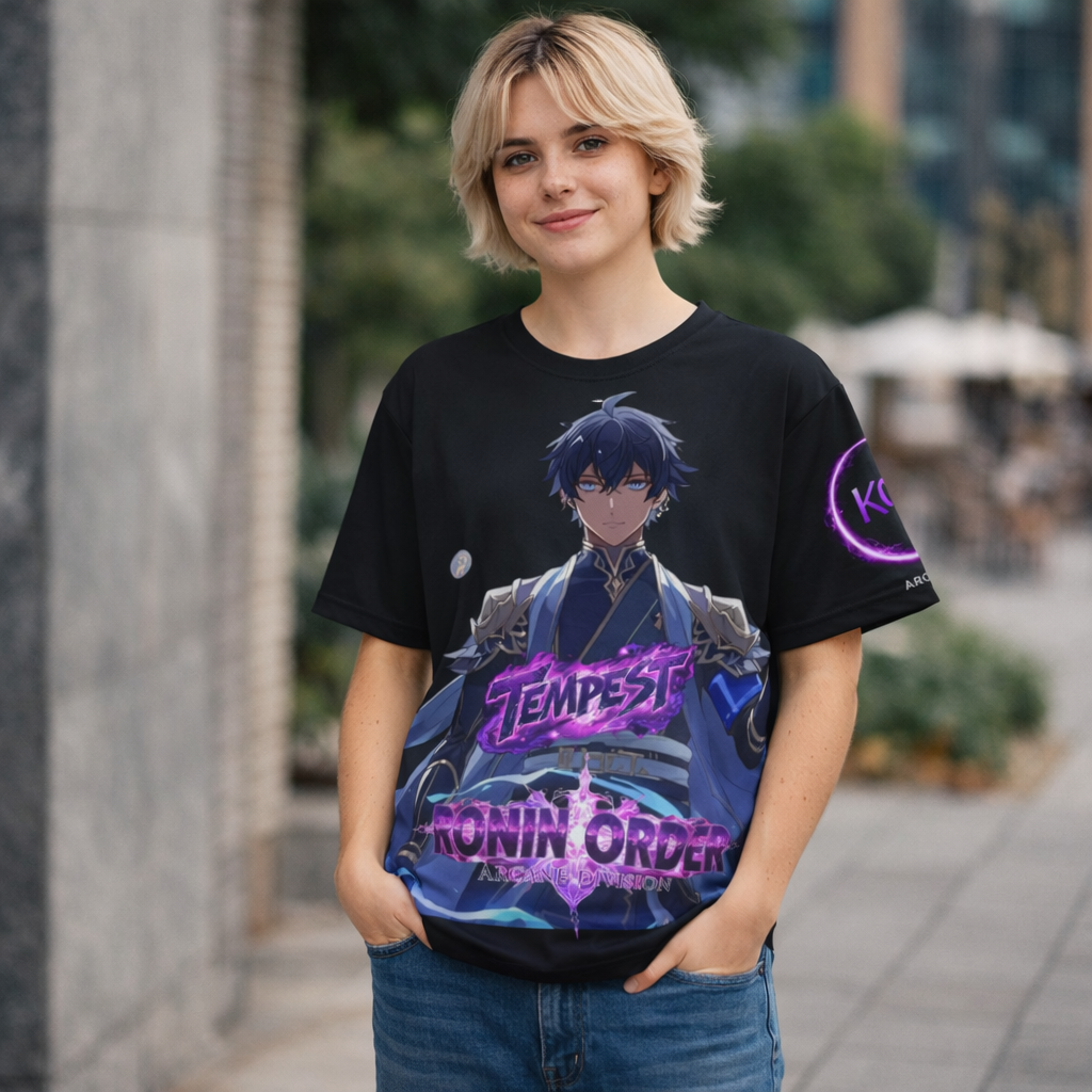 This anime streetwear design represents the speed, focus, and mastery of storm energy within the Ronin Order.